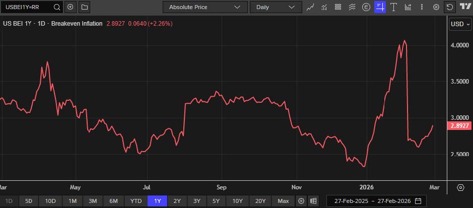 As of now, the market is not pricing in a prolonged conflict between the U.S., Israel and Iran and should have limited effects in terms of macroeconomic instability. Transmission of higher energy prices into sustained inflation appears muted — 1-year breakeven inflation currently sits at ~2.89%, well below the multi-year peak above 4% seen on Feb. 4 — indicating that markets continue to expect inflation pressures to moderate absent a deeper or lengthier supply shock.