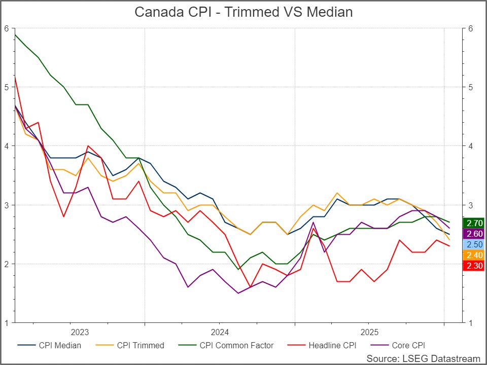 The Bank of Canada has signaled that policy rates are now near appropriate levels and has indicated readiness to adjust rates in either direction should conditions change. Market pricing currently implies no cuts in 2026, followed by a potential rate increase in 2027. In our assessment, trade tensions and any associated decline in trade volumes with the U.S. remain key risks that could return the Bank of Canada to an easing bias.
